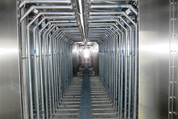 4)輸送鏈底部通過棚體開口處設封刷,防止水氣外逸。
