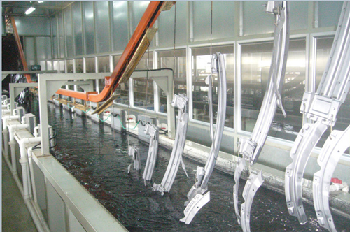 電泳又名電著(著),泳漆,電沉積。電泳設(shè)備主要由:電泳槽及攪拌循環(huán)系統(tǒng)、漆液超濾系統(tǒng)、漆液溫度調(diào)控系統(tǒng)、純水供給系統(tǒng)、整流電源、陰電極液系統(tǒng)、通風(fēng)系統(tǒng)、調(diào)漆系統(tǒng)和泳后沖洗系統(tǒng)等組成。中等以上批量均采用連續(xù)通過式電泳設(shè)備,是一種高技術(shù)、高要求、高裝飾性的底層防腐處理工序。 由于電泳設(shè)備有出色的防腐、防銹功能,在軍工行業(yè)、日用五金的表面處理得到廣泛應(yīng)用?,F(xiàn)在也廣泛用于汽車,家用電器以及各類鋼鐵件的耐蝕涂裝等。